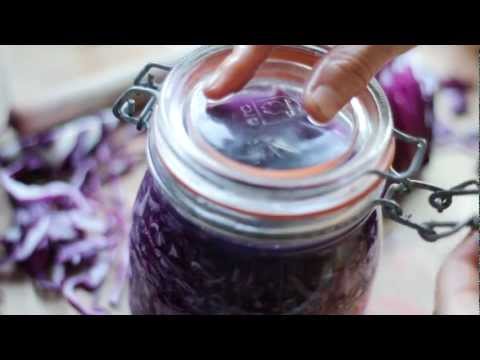 Ruby Sauerkraut }}- How we used the red cabbage we grew... easy sauerkraut in a jar. Get the recipe at http://kitchenvignettes.blogspot.ca/2012/09/ruby-sauerkraut.html Music by ...