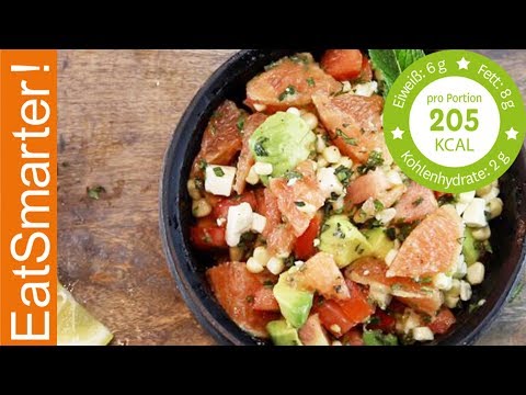 Grapefruit Salat | REZEPT - Pampelmuse Salat - Was für ein erfrischender Sommersalat! Heute gibt's einen gesunden Grapefruit-Salat mit Avocado, Mais, Schafskäse und viel frischer Minze. Probiert's gleich ...